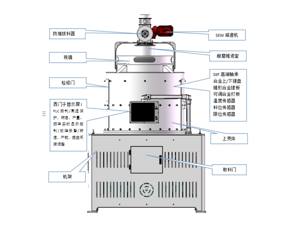 - 智能進料防堵裝置:采用新型防堵結構設計,保證物料暢通不堵塞。